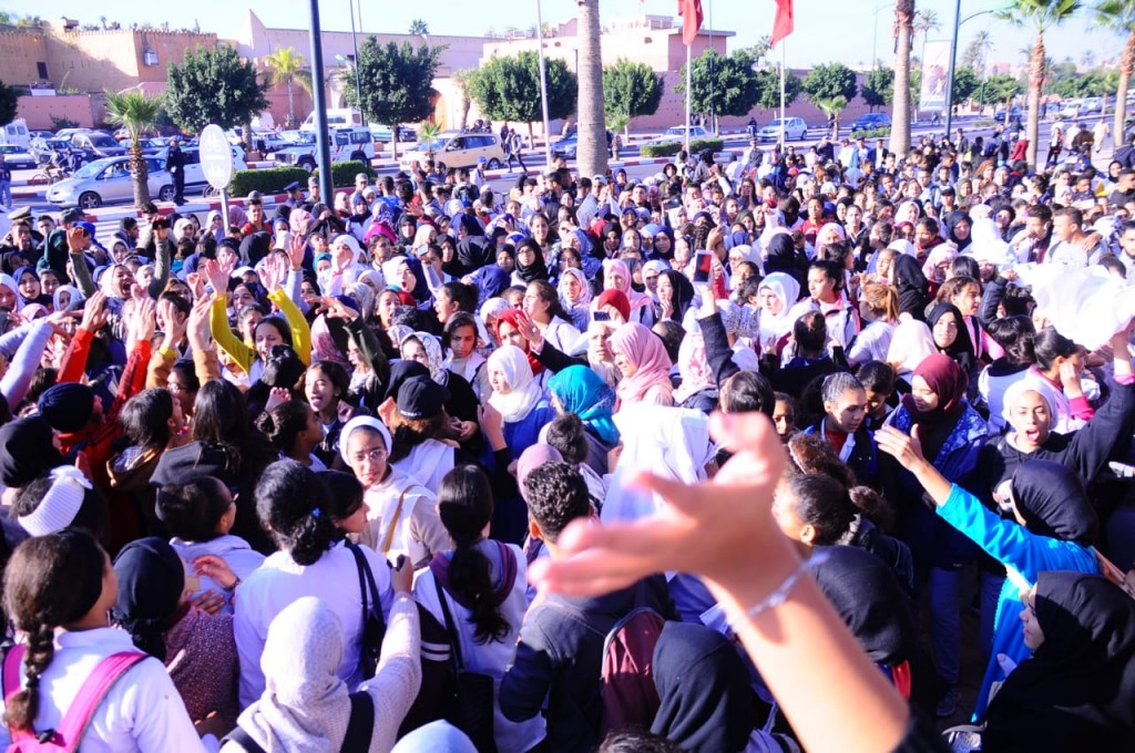 ورفع تلاميذ المؤسسات التعليمية ،”حسان بن ثابت”، “عودة السعدية”، “محمد الخامس”، “الفارابي”، “الرحالي الفاروقي”، وغيرها من المؤسسات، خلال مسيرات سلمية، باتجاه ولاية جهة مراكش-آسفي، والأكاديمية الجهوية للتربية والتعليم بمراكش، شعارات منددة بالتوقيت الذي اعتمدته حكومة “العثماني” الذي يضر بصحة التلاميذ وأوليائهم، وبهدد سلامتهم الجسمية والصحية، قائلين: “أولادكم قريتوهوم.. وأولاد الشعب كلختومهوم..”، “هذا عيب هذا عار … التلميذ في خطر”، “ماندخلوش لقِسْمنا.. حتى ترجع ساعتنا..”.